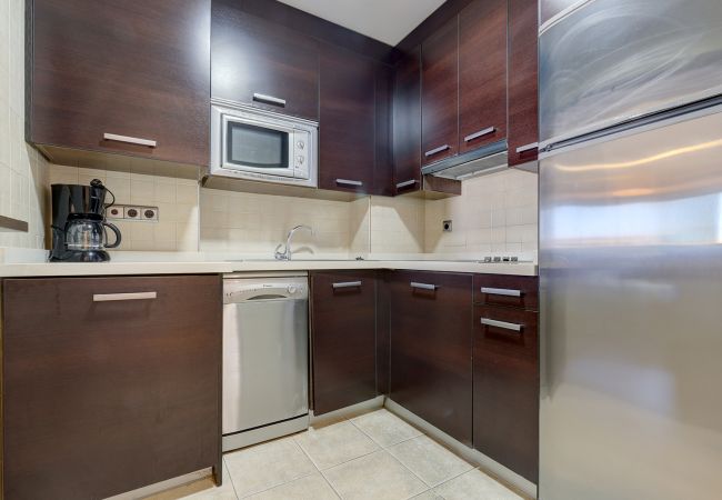 El apartamento cuenta con una distribución espaciosa de un dormitorio con opciones flexibles de alojamiento, que puede acomodar cómodamente hasta cuatro huéspedes. El dormitorio principal tiene dos camas individuales que se pueden juntar o separar según sea necesario. La cocina totalmente equipada incluye todas las comodidades modernas que se esperarían para una estancia de autoservicio, incluyendo un refrigerador, congelador, lavavajillas, horno, microondas y máquina de café, lo que hace que la preparación de comidas sea muy sencilla.