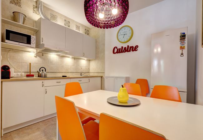La sala de estar se conecta perfectamente con una cocina totalmente equipada de planta abierta, que incluye un frigorífico congelador, placa de cocina, microondas, cafetera y todas las necesidades que pueda necesitar para una estancia completamente autoservida. Hay dos dormitorios espaciosos, cada uno amueblado con grandes camas dobles, televisores de pantalla ancha y amplio espacio de armario. El apartamento también ofrece un gran baño familiar con ducha, además de aire acondicionado y acceso gratuito a Wi-Fi en todo el espacio, garantizando comodidad y conectividad durante su estancia.