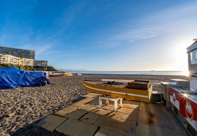 Ubicado en La Carihuela, la zona conserva su encantador ambiente de pueblo pesquero, con restos de su pasado histórico visibles en sus pintorescos rincones. Hoy en día, La Carihuela es un distrito cosmopolita vibrante conocido por sus animados restaurantes, bares y locales de entretenimiento. La fama gastronómica del distrito está arraigada en su excepcional "pescaíto" —pescado pequeño frito— preparado utilizando técnicas secretas conocidas solo por los chefs locales, lo que hace que comer aquí sea un verdadero deleite gastronómico. Todo esto está a poca distancia a pie.